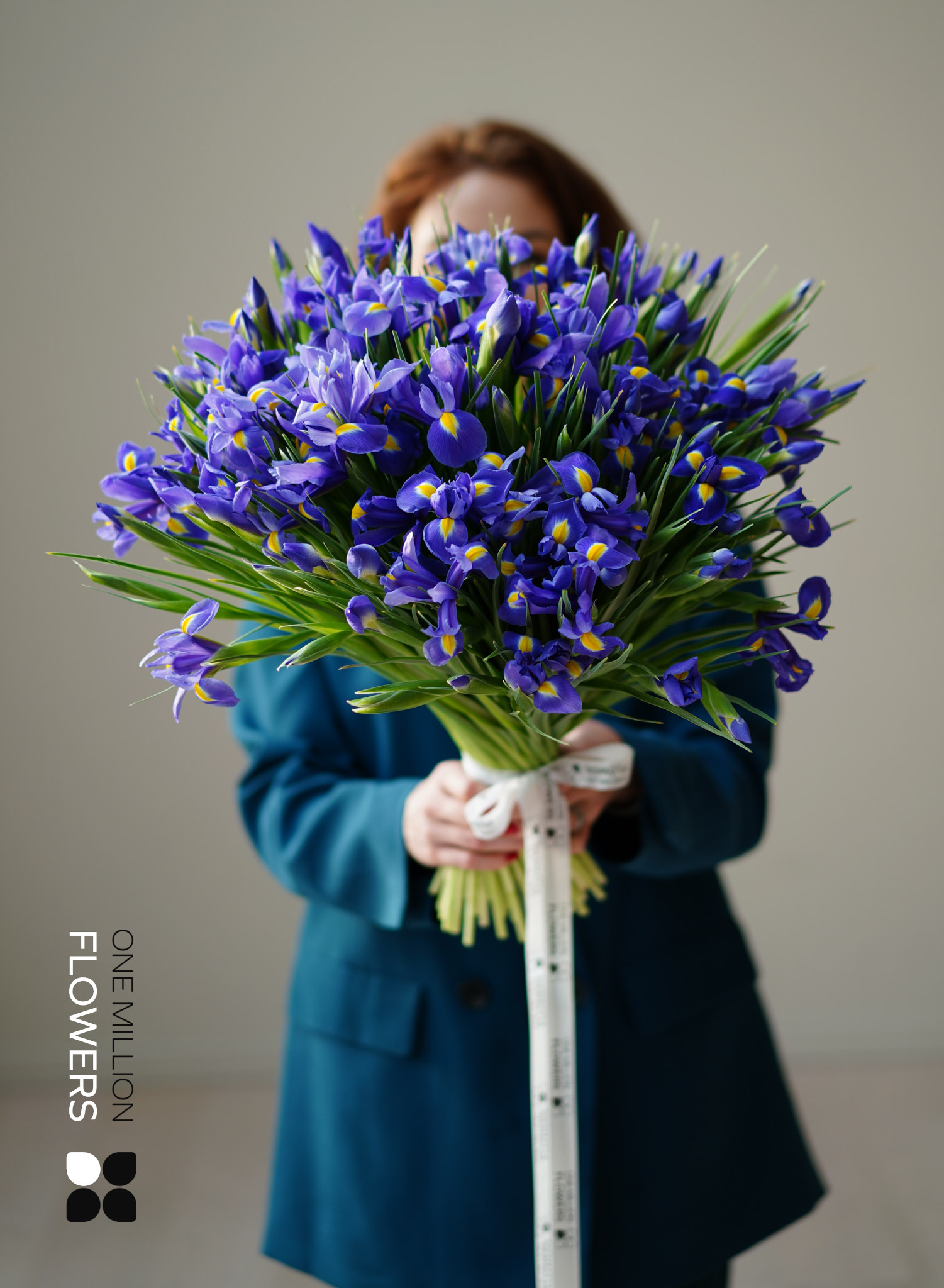 Состав букета: Ирисы синие — 101 шт.