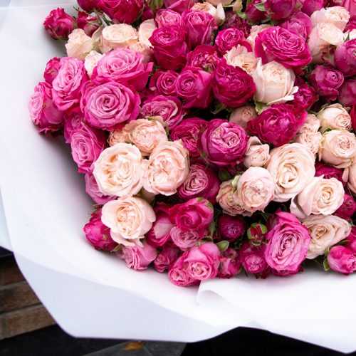 Букет из 51 розы "Бомбастик Консилье" White - это красивый и роскошный букет, который превращает любой особый момент в незабываемое событие. В нем объединены два сорта роз: Бомбастик Малиновый и Бомбастик Кремовый (нежно). Этот уникальный комбинированный букет станет идеальным подарком для различных случаев и праздников.
