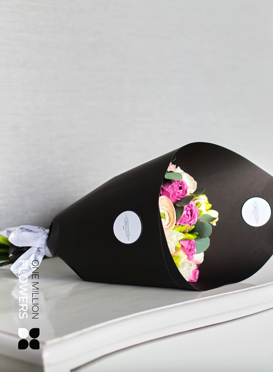 Букет "Камбриа" Black — это настоящее произведение искусства, созданное для удивления и вдохновения. В его состав входят 7 кустовых роз Мисти Баблз, которые обладают невесомой красотой и нежным ароматом. Композицию дополняют 15 фрезий, 3 розовых диантуса, 4 белых ранункулюса и 2 пионовидные розы Пинк Охара. Эти цветы создают невероятный контраст и дарят частичку весенней свежести в любую погоду. Каждая деталь продумана и тщательно подобрана, чтобы вызвать восторг у получателя.