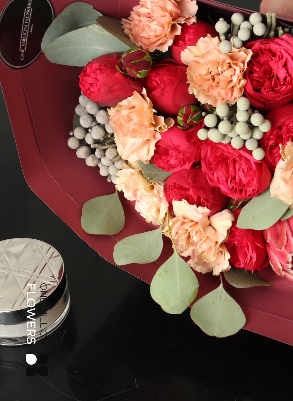 Каждый цветок, вошедший в состав букета, был тщательно подобран, чтобы подчеркнуть его элегантность и свежесть. Диантусы, символизирующие уважение, прекрасно дополняются сочными и ароматными пионами, которые ассоциируются с романтикой и нежностью. Добавление эвкалипта придаёт букета стиль и современность, а протея становится экзотическим акцентом, олицетворяющим силу и красоту. Бруния же добавляет интересные текстурные элементы, делая этот букет ещё более привлекательным.