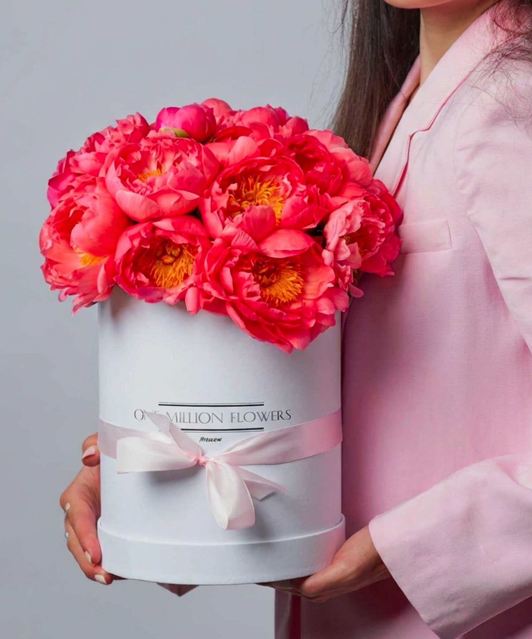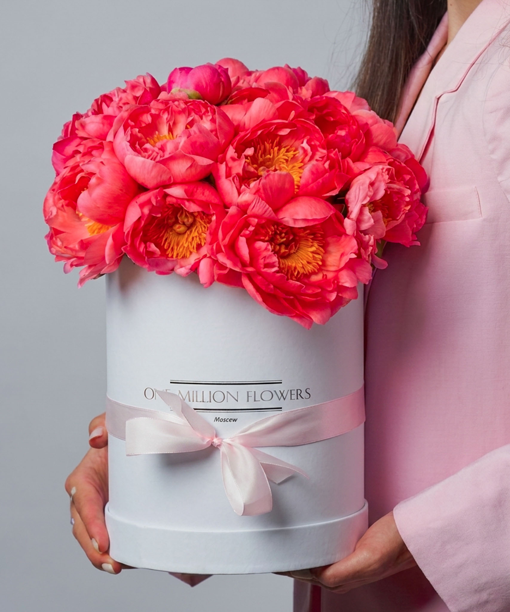 Коробка с пионами "Салмон Дрим" White