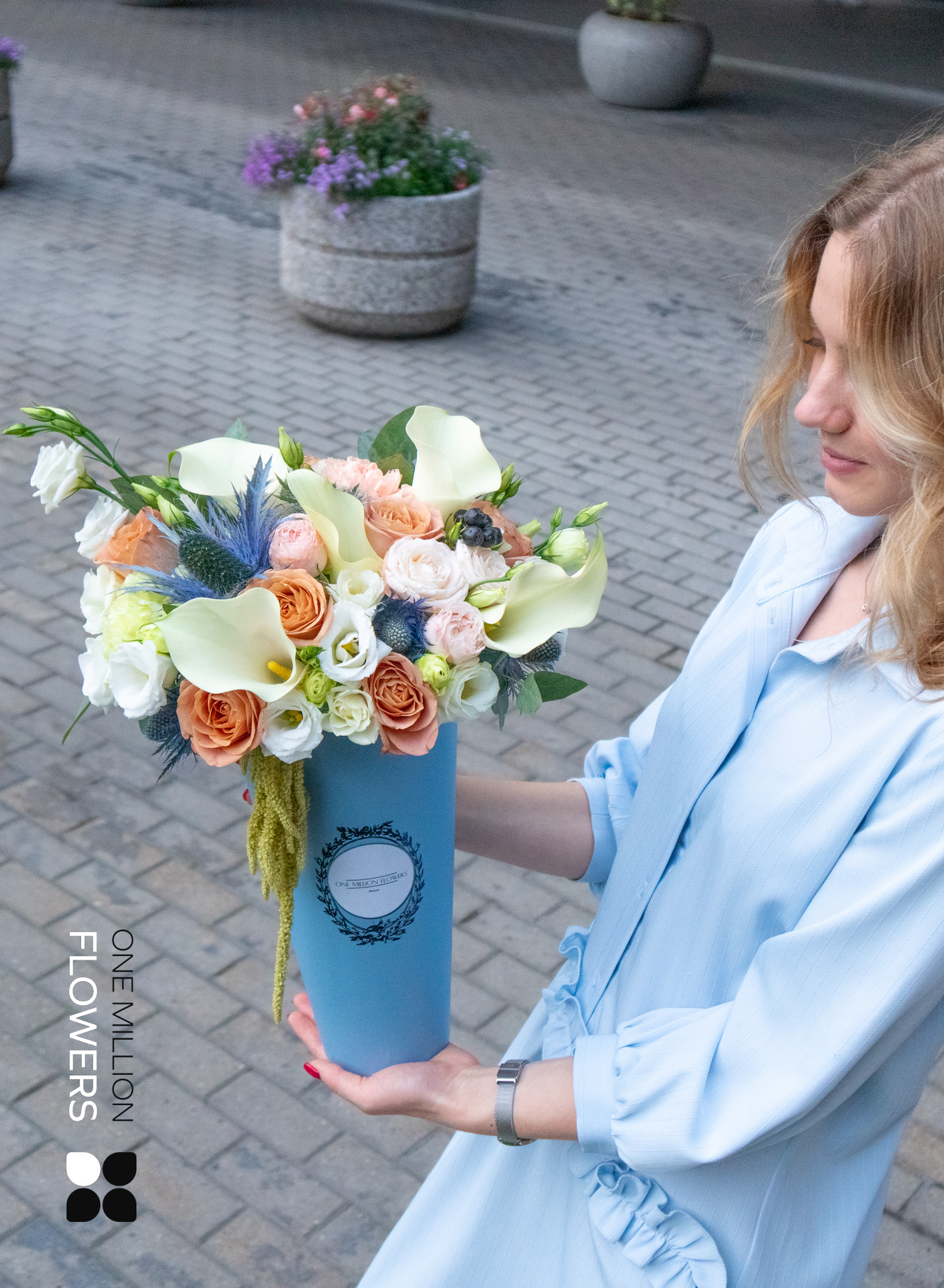 Коробка с цветами "Санта Моника" Blue — лёгкость Калифорнии в сердце Москвы