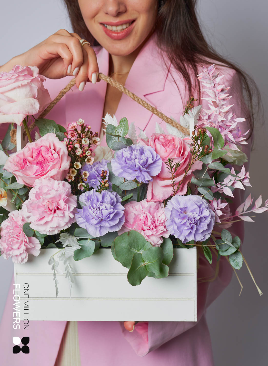 Если вы хотели бы заказать доставку цветов в коробке, но не знаете точного адреса получательницы, то просто укажите в комментарии к заказу ее контактный номер. Мы сами деликатно узнаем у нее удобное для нее место и время.